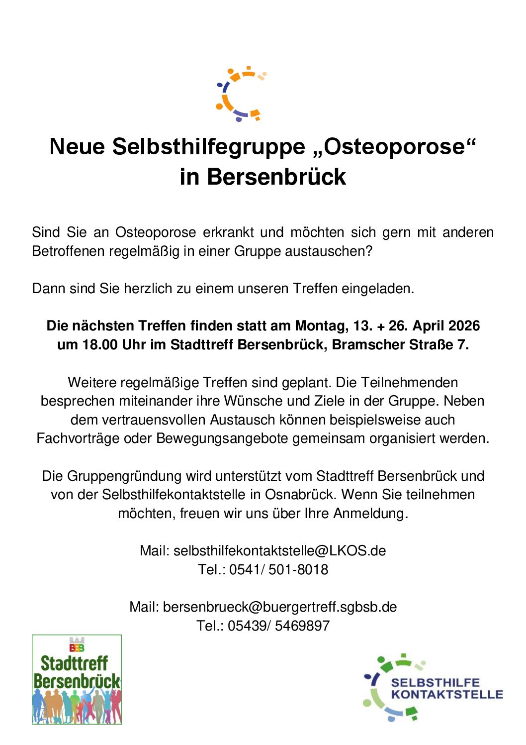 Seid neugierig und schaut einfach einmal unverbindlich im Stadttreff Bersenbrück vorbei. Jeder kann bei uns mitmachen – ob als Besucher:in oder Gastgeber:in! Wir freuen uns auf ehrenamtliche Helfer:innen und über gute Ideen. Alle Interessierten können sich bei uns aktiv einbringen
